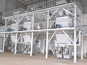 膩子粉生產線主要由原料儲存系統,輸送系統、計量稱重配料系統、混合系統、氣動系統、除塵系統、包裝系統及自動控制系統...